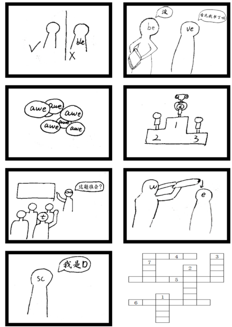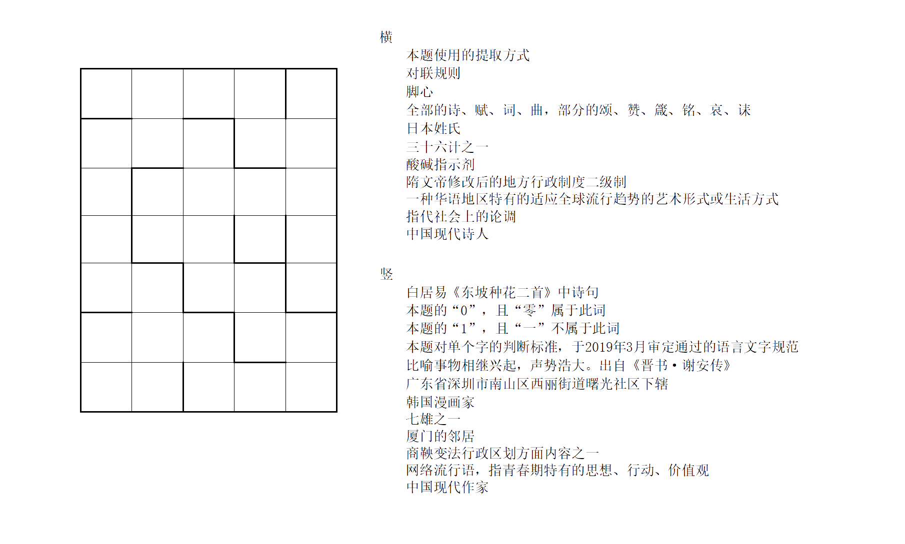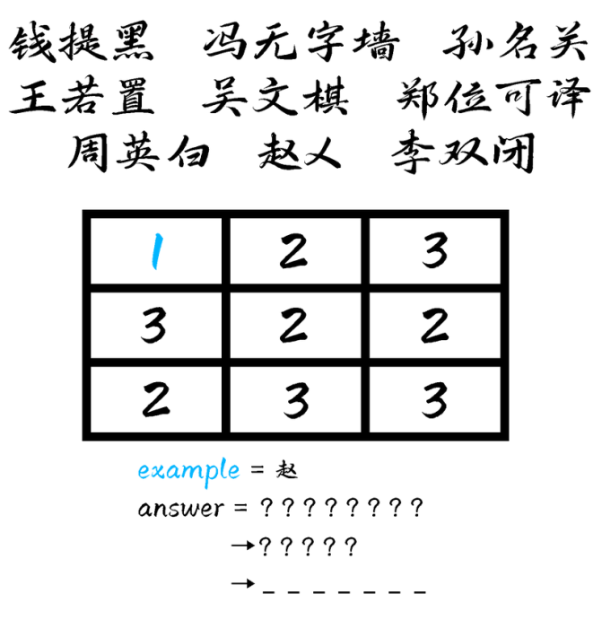 “当坠落的部件重组成汉字,合纵的线索也缀上相同的音韵” “说人话,提别在这掉书袋” “中文dropquotes” (注:dropqoutes:将字母一列列放进方格使横行成为单词的游戏)